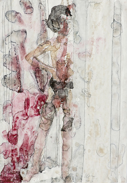 "In der Tür" (1999, Bleistift/Aquarell, 63 x 44 cm)