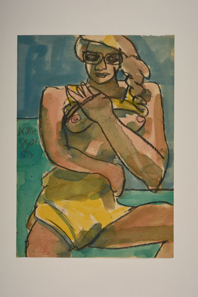 "Pin-up 3 " (1983, Aquarell/Kreide auf Papier, 30 x 12 cm)